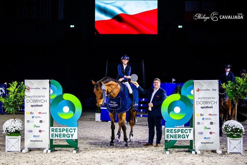 Fot. Marta FlatowHubert Prasek dosiadający konia Bueno L wygrał konkurs Rundy Srebrnej Respect Energy Open Tour, o nagrodę Respect Energy, pod patronatem marki Nowy Adres. Druga była tu Julia Balawender na koniu Wilson MK, a trzecia – Oliwia Kwiecińska na wałachu Jackpot.